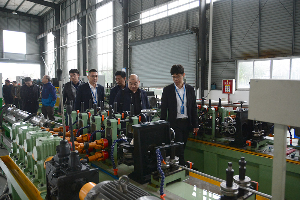圖為參觀不銹鋼生產(chǎn)車間