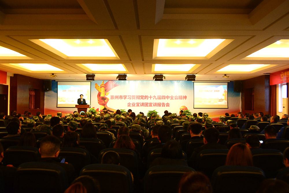 在全市上下深入開展學習宣傳貫徹黨的十九屆四中全會精神之際,12月16日下午,根據市委統(tǒng)一安排,崇州市學習貫徹黨的十九屆四中全會精神企業(yè)宣講報告會在康泰集團舉行。成都市第十七屆人大代表周云作黨的十九屆四中全會精神宣講。崇州市相關單位及經開區(qū)領導、經開區(qū)重點企業(yè)黨支部書記及企業(yè)負責人、黨員、預備黨員等參加了此次宣講會。