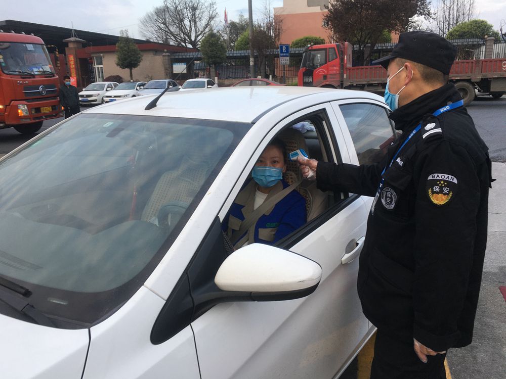 圖為進(jìn)廠區(qū)前進(jìn)行體溫測(cè)量