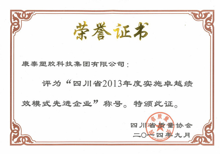 ?????? 卓越績效模式是80年代后期美國創(chuàng)建的一種世界級企業(yè)成功的管理模式,其核心是強化組織的顧客滿意意識和創(chuàng)新活動,追求卓越的經(jīng)營績效,引導(dǎo)企業(yè)持續(xù)改進,是不斷提升企業(yè)管理水平和綜合競爭能力的有效途徑??堤┘瘓F自2009年開始申報“省實施卓越績效模式先進企業(yè)”以來,連續(xù)六年獲此殊榮,實現(xiàn)了康泰集團質(zhì)量管理目標。