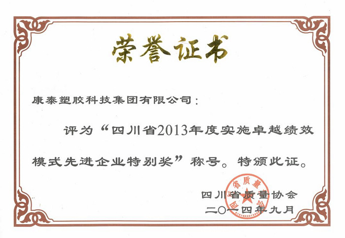 圖二:四川省2013年度實施卓越績效模式先進企業(yè)特別獎