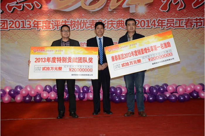??? 會議最后,集團董事長兼總裁林云青先生發(fā)表新年寄語,林總裁首先對獲獎的員工表示了祝賀,對還有很多沒有獲獎的默默付出的優(yōu)秀員工、對全體康泰員工2013年付出的辛勤努力表示感謝,林總裁表示:“時光飛逝,白駒過隙,2013年已經(jīng)過去,在白熱化的市場競爭和房產(chǎn)打壓的影響下,我們?nèi)w康泰人不斷探索,尋找屬于我們的方向,我們公司全力以赴,建立了獨特的推廣營銷模式,通過一區(qū)一策的營銷管理理念,通過全員的共同努力,全面完成了20%增長的年度經(jīng)營目標,并基本全面完成公司的各項指標,這是公司全體員工共同努力才取得的結果,我代表公司股東、董事及管理團隊衷心的感謝你們,希望全體康泰人在新的一年里,繼續(xù)保持務實勤儉、高效干練的先鋒工作作風,在新的一年里實現(xiàn)更大突破,取得更大成功。”