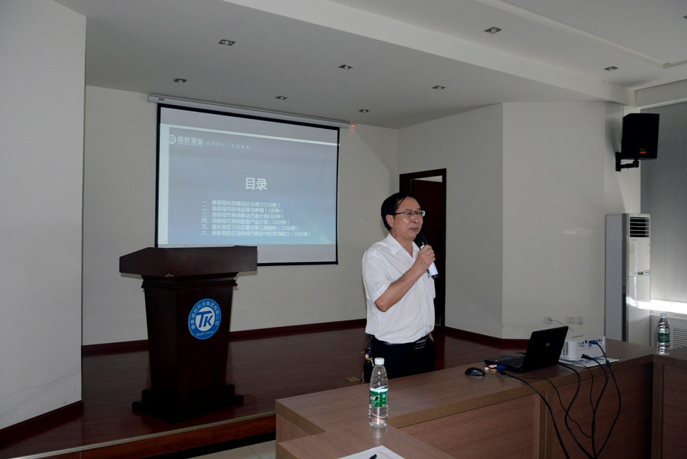 研發(fā)總監(jiān)張雙全重點推介了康泰的海綿城市系統(tǒng)和康泰獨家研發(fā)、國內(nèi)首創(chuàng)的MPVE?系統(tǒng)。講解中,張總從設(shè)計理念、開發(fā)背景、技術(shù)特點、產(chǎn)品原料、生產(chǎn)設(shè)備安裝操作、性能對比、實驗分析、應(yīng)用領(lǐng)域、工程案例應(yīng)用等方面分別作了詳實介紹。同時介紹了已經(jīng)取得的專利成果,闡述了以市場需求、國家政策和先進技術(shù)為導向,生產(chǎn)一代、研發(fā)一代、設(shè)計一代,內(nèi)部實行產(chǎn)品標準化與技術(shù)、工藝配方創(chuàng)新的研發(fā)理念。